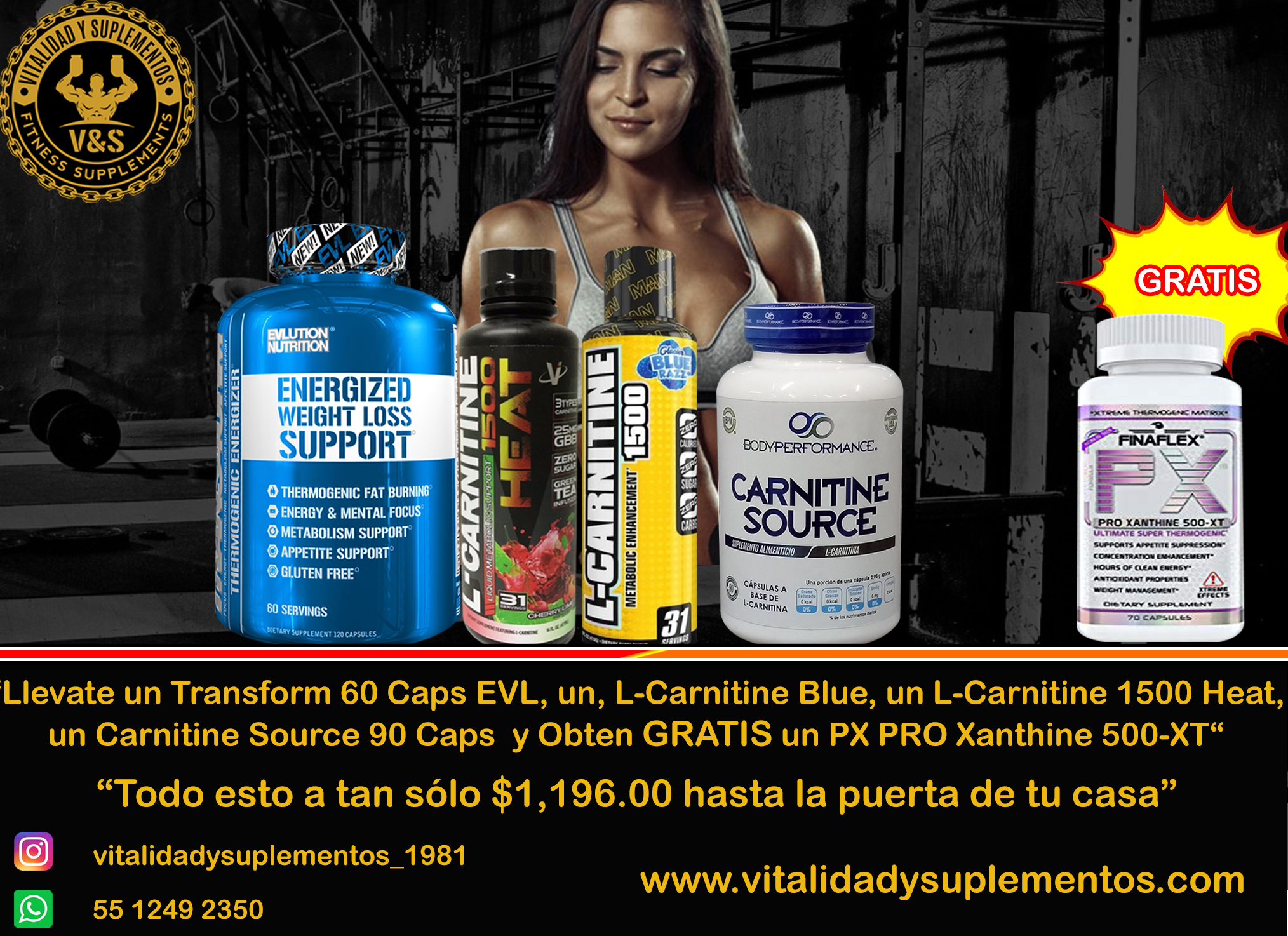 Llevate un Transform 60 Caps EVL, un, L-Carnitine Blue, un L-Carnitine 1500 Heat, un Carnitine Source 90 Caps y Obten GRATIS un PX PRO Xanthine 500-XT